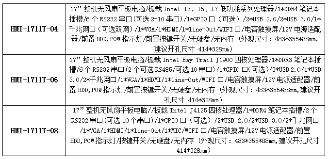 HMI-1711T是一款配置17” LCD 液晶屏的低功耗工業(yè)級平板電腦,采用Intel® Atom J1900/J4125 四核低功耗處理器,具有豐富的I/O 接口,可廣泛應(yīng)用于如電氣測試校驗臺、煙草物流檢測設(shè)備、橡膠機械、測試設(shè)備等領(lǐng)域。